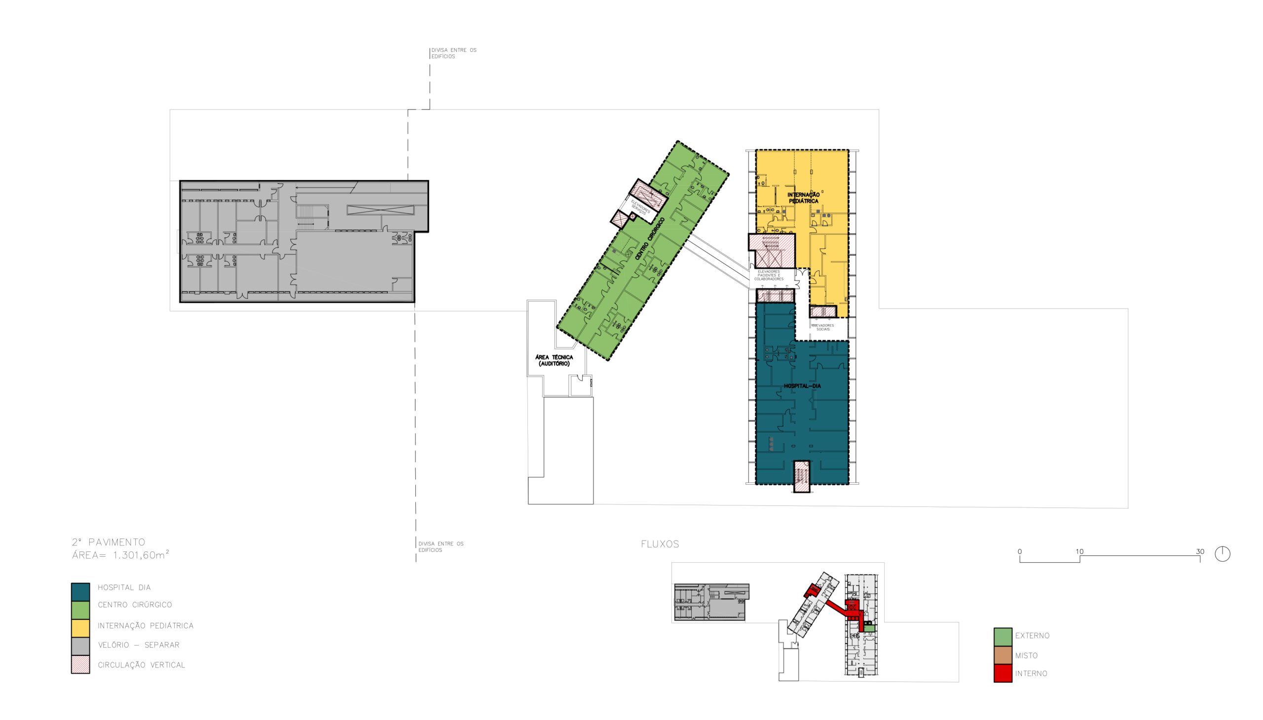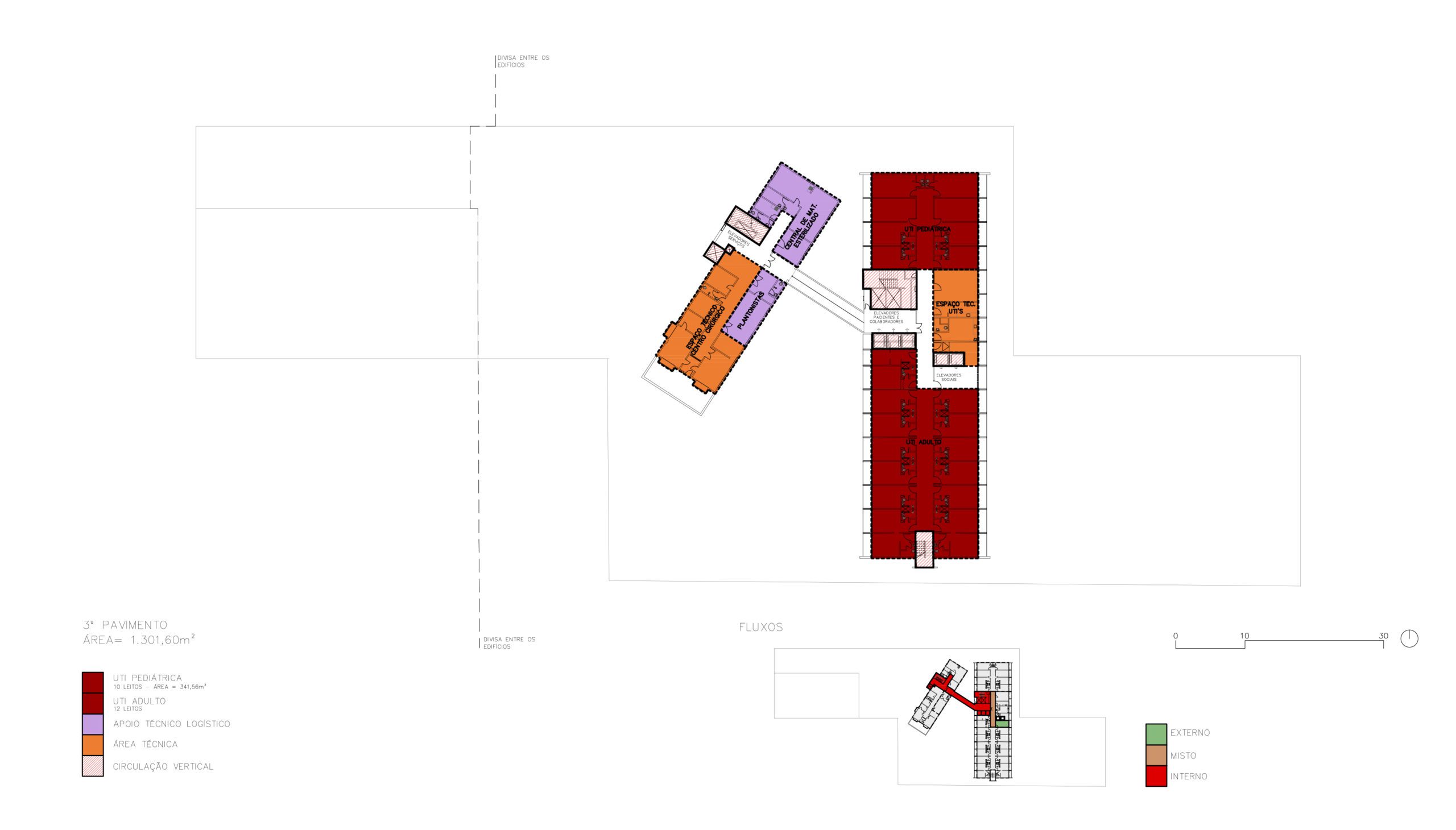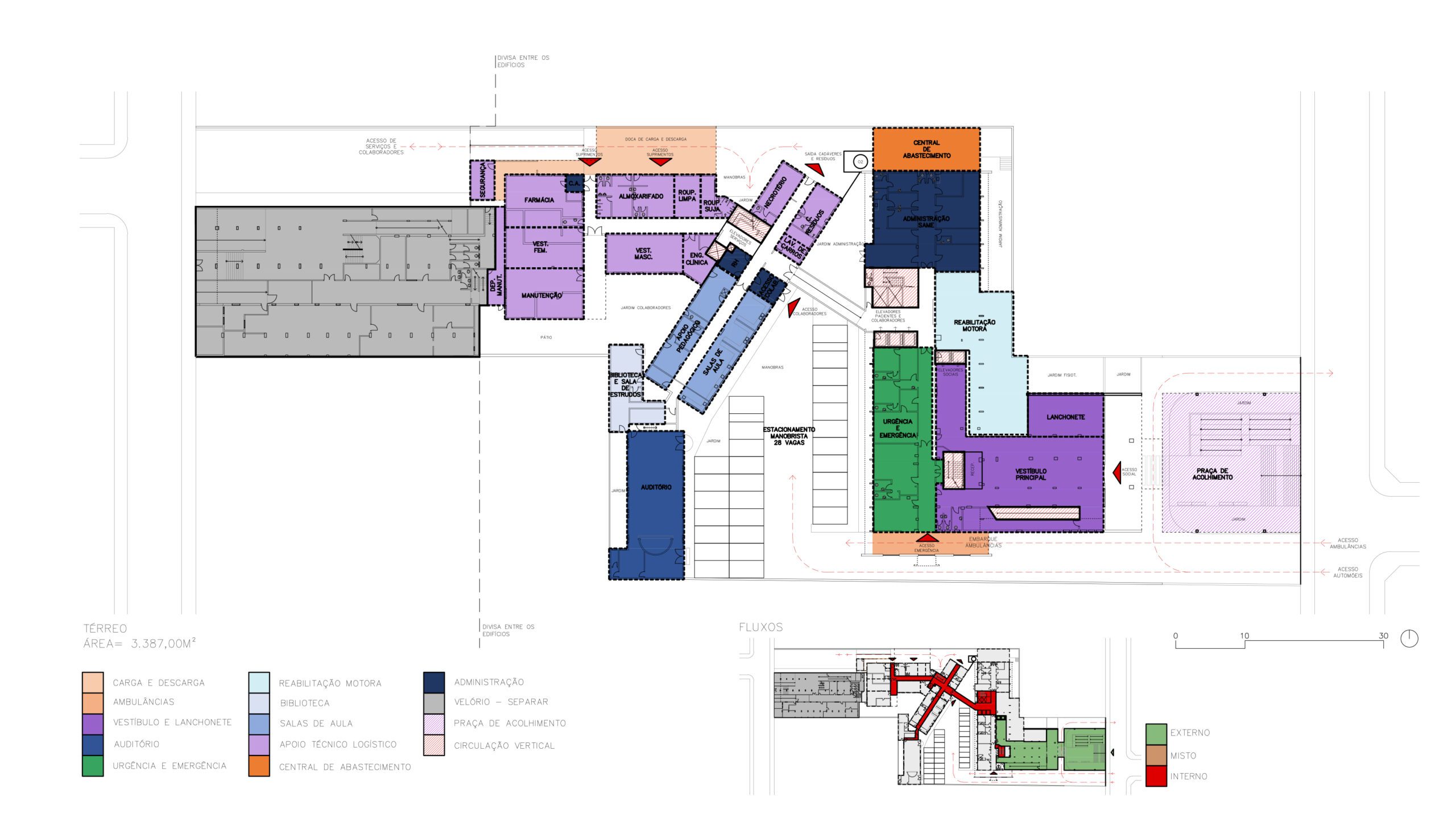 Dessa forma, para além do Estudo de Viabilidade, foi desenvolvido um Plano Diretor Físico Hospitalar, que guiaria as ações e os investimentos para a ocupação faseada, permitindo maior controle e organização das expansões.