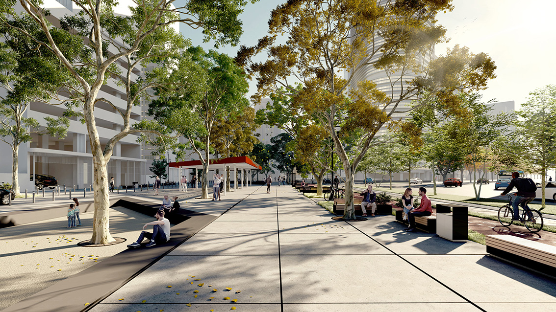 O Anel Perimetral, com a sua intensidade, invisibiliza a história e evolução urbana da cidade. Tratamos de reequilibrar este importante “nós” da Avenida de Irradiação.