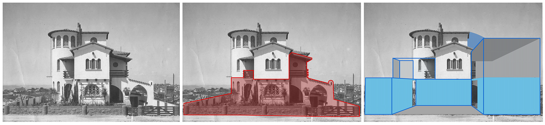 O projeto partiu da análise dos espaços, formas e elementos que não haviam sido demolidos e que poderiam ser restaurados. Durante a pesquisa, percebeu-se que, na área externa, somente parte do segundo pavimento e o mirante encontravam-se relativamente em bom estado, preservando o desenho original. Internamente a antiga sala de estar, com as vigas de madeira originais, e a bela escada helicoidal entre o térreo e o 1º pavimento (o trecho entre o 1º pavimento e o mirante havia sido demolido) possuíam condições de restauro. Diante disso, para atender o programa de necessidades, decidiu-se pela criação de novos volumes nas bordas da antiga construção, de forma a revelar os volumes que haviam mantido o desenho original, enquadrando-os.