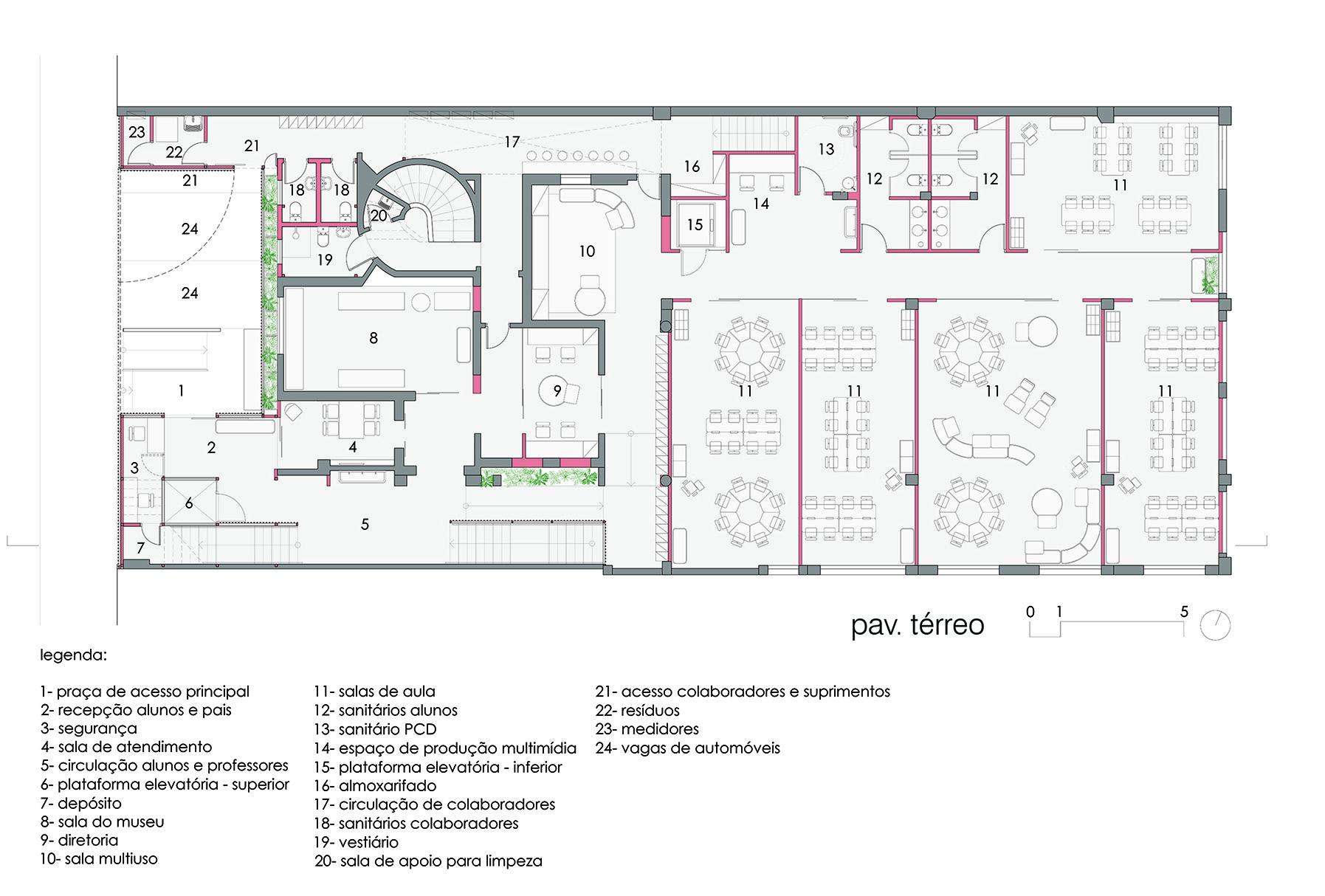 Foi possível modernizar completamente a escola, dar acessibilidade a todos os níveis, dotá-la da segurança adequada contra incêndio e implantar as mais modernas tecnologias relacionadas ao ensino.